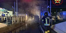 PISTOIA. L'incendio è stato spento dai vigili del fuoco. Il mezzo trasportava materiale alimentare in contenitori in plastica