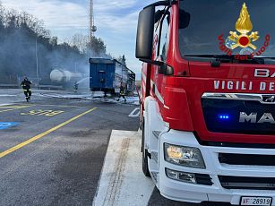MONTECATINI TERME. L'incendio del mezzo pesante è avvenuto proprio all'altezza dell'uscita di Montecatini Terme. Le fiamme hanno distrutto la cabina di guida