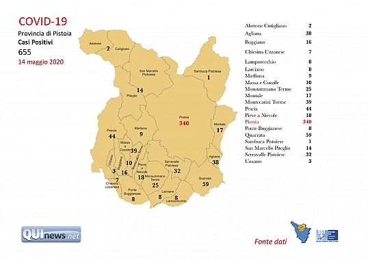 Il totale delle persone decedute nel pistoiese sale dunque a 77, i positivi invece sono 655. A livello regionale 30 nuovi casi e 9 morti