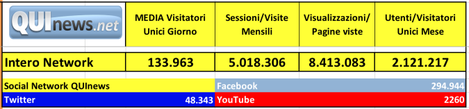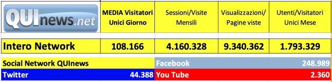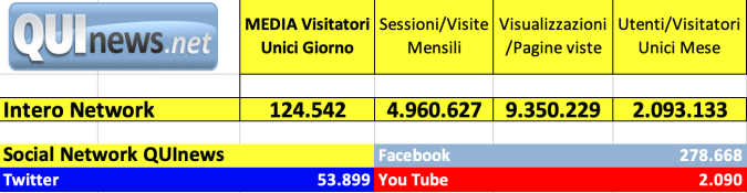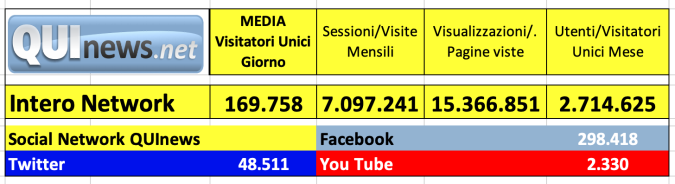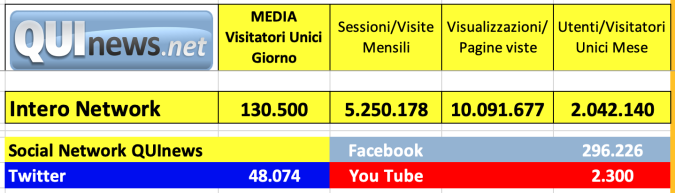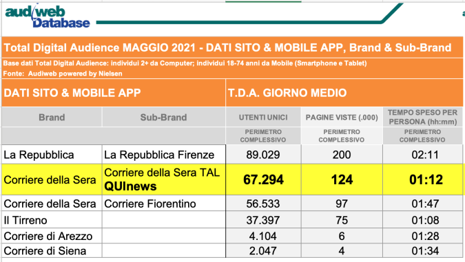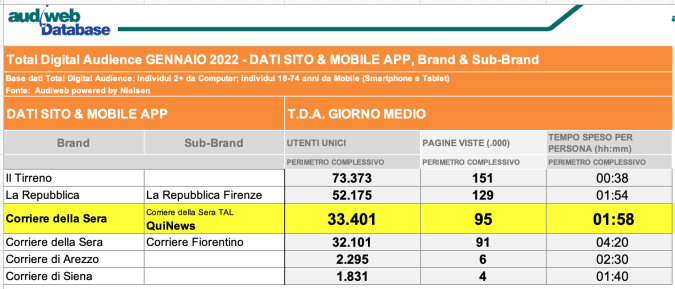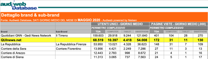 I DATI AUDIWEB DEL MESE DI NOVEMBRE 2020 NON SONO PRESENTI PER ADEGUAMENTO TECNICO DELLA RILEVAZIONE DEL NETWORK QUINEWS COME SUB BRAND DEL CORRIERE DELLA SERA