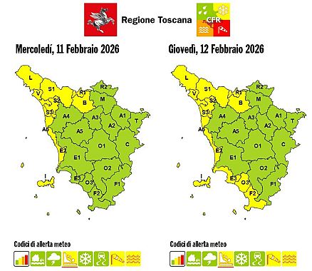 TOSCANA — La sala operativa della protezione civile regionale ha prorogato fino alle 15 di domani, giovedì 12 Febbraio, l'allerta gialla per rischio idrogeologico già in vigore sulla Toscana nord-occidentale, in particolare per Lunigiana, Garfagnana, Valle e foce del Serchio, Versilia, area lucchese, Valli del Bisenzio e dell’Ombrone pistoiese.