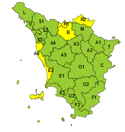 Sulla base di queste previsioni la sala operativa della protezione civile regionale ha emesso un codice giallo per rischio idraulico e idrogeologico valido dalle 18 di oggi fino alle 6 di domani per le valli del Bisenzio e dell'Ombrone.